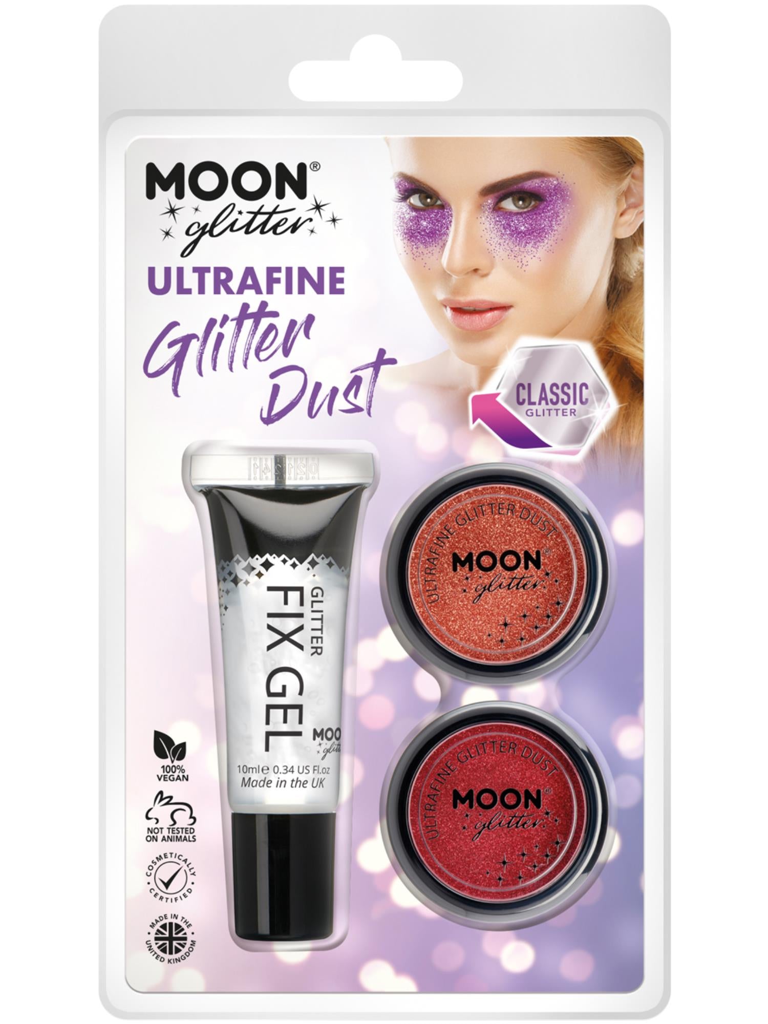 Moon Glitter Classic Ultrafine Glitter Dust, Clamshell, 5g - Fix Gel, Copper Bronze, Red
