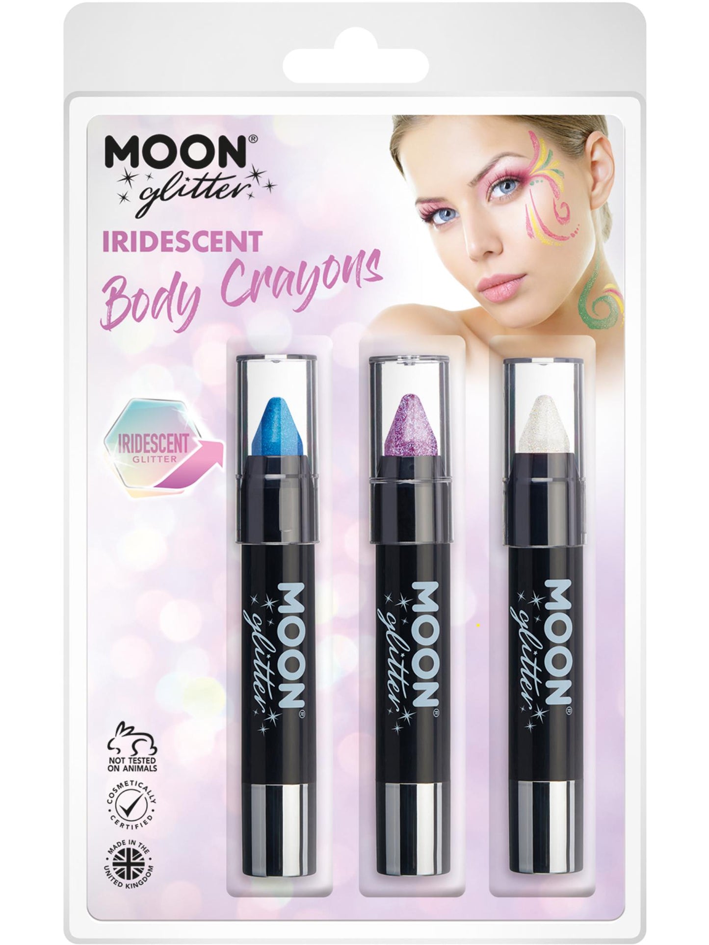 Moon Glitter Iridescent Body Crayons, Clamshell, 3.2g - Blue, Purple, White
