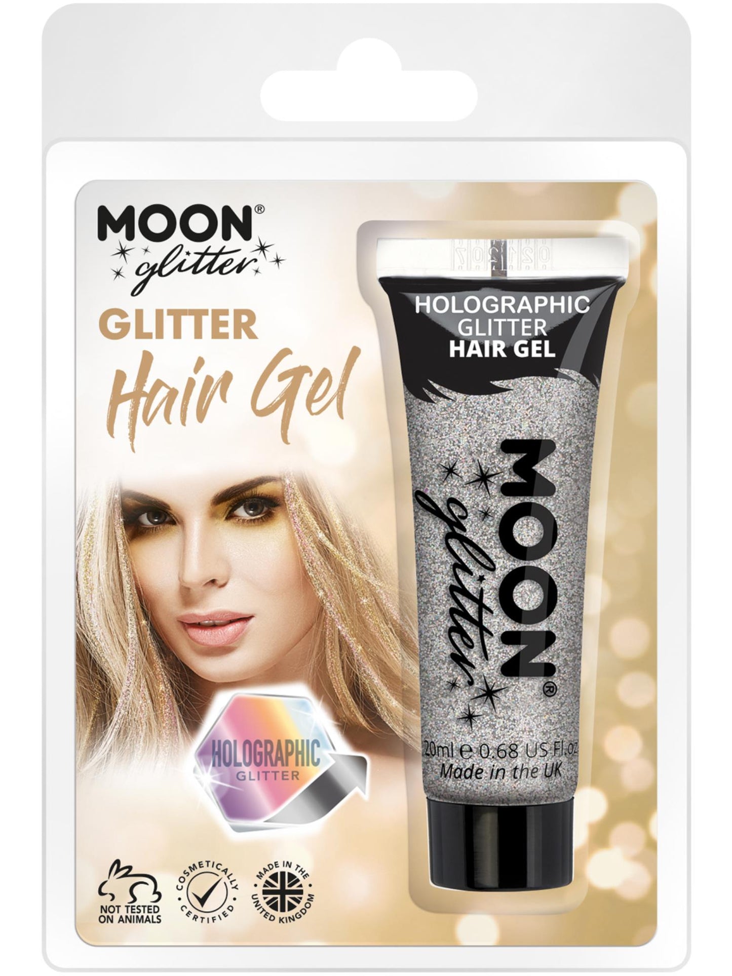 Moon Glitter Holographic Glitter Hair Gel, Silver Clamshell, 20ml