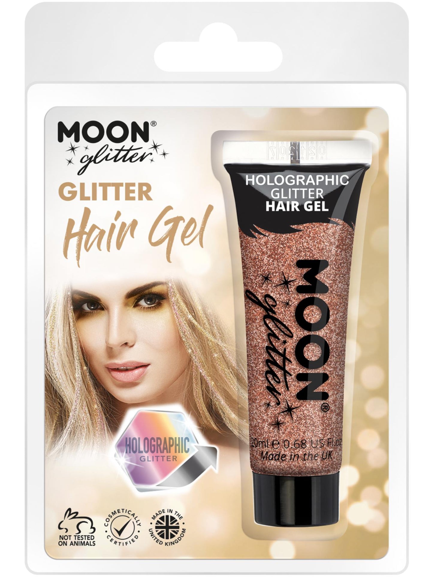 Moon Glitter Holographic Glitter Hair Gel Rose Gold, Clamshell, 20ml