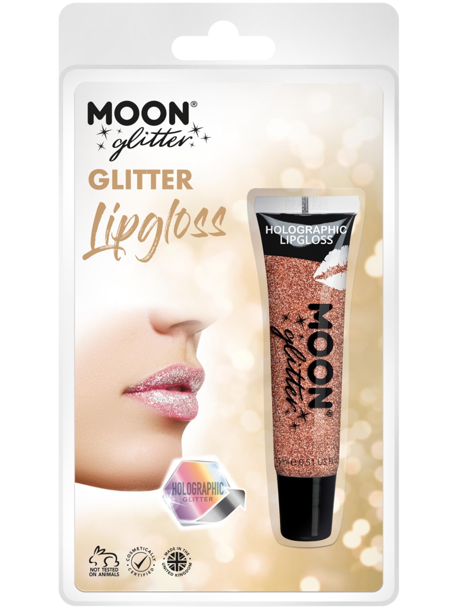 Moon Glitter Holographic Glitter Lipgloss Rose Gold, Clamshell, 15ml