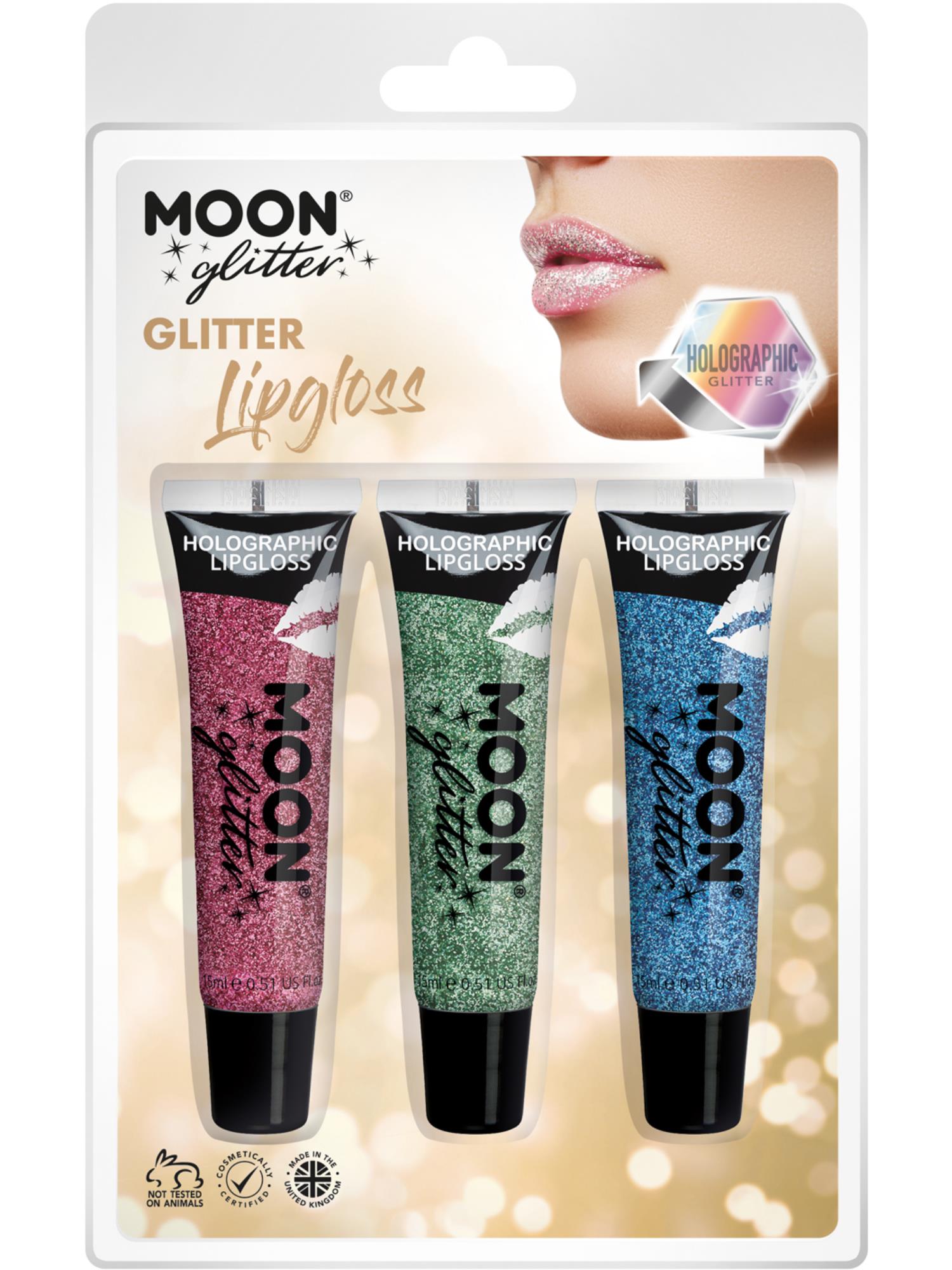 Moon Glitter Holographic Glitter Lipgloss, Clamshell, 15ml - Pink, Green, Blue
