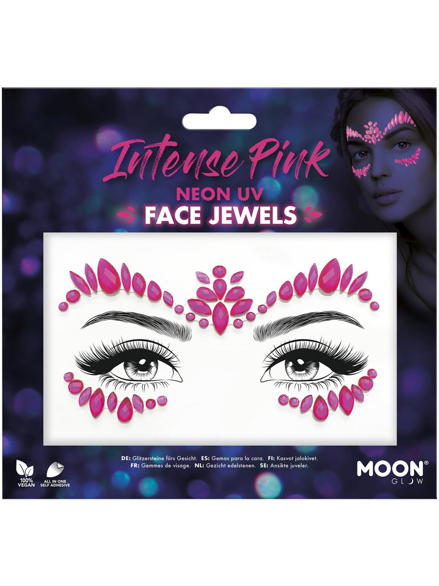 Moon Glow Face Jewels, Intense Pink Neon UV